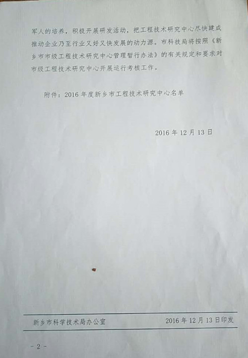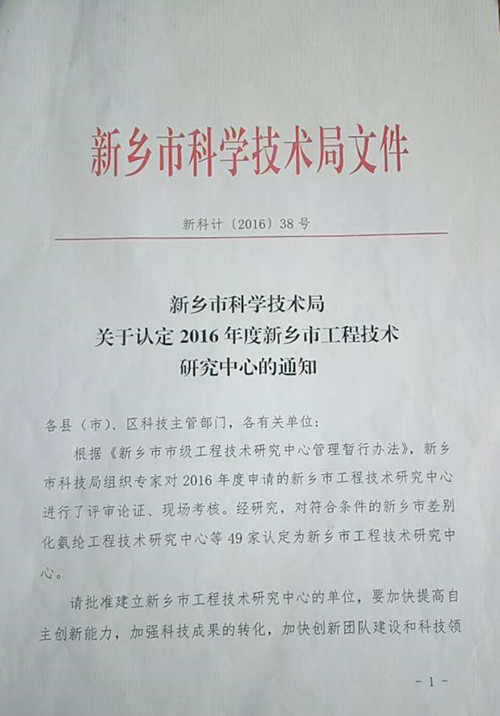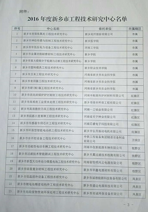 新鄉(xiāng)市科學(xué)技術(shù)局——關(guān)于認定2016年度新鄉(xiāng)市工程技術(shù)研究中心的通知